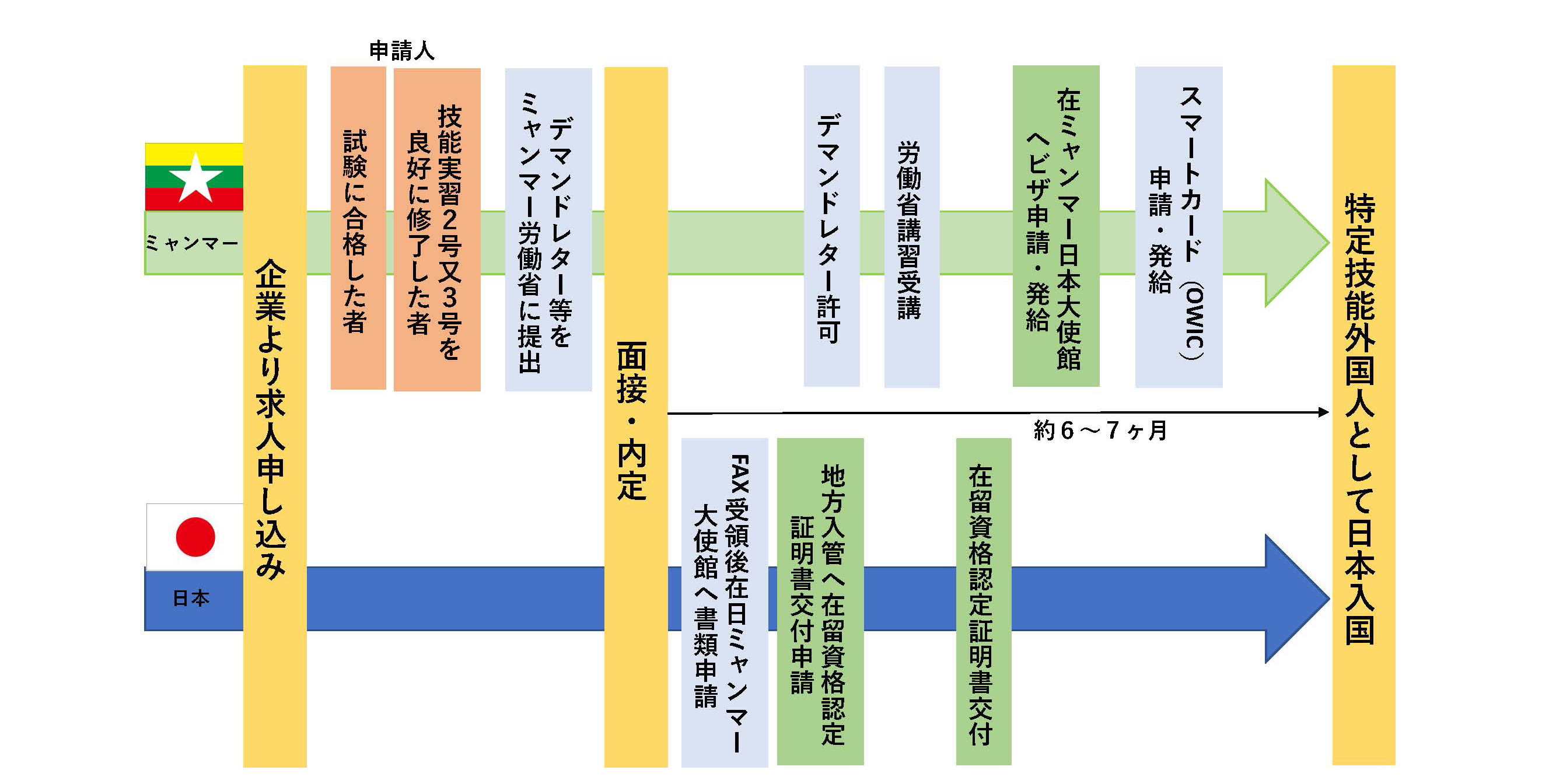 弊社の送り出し事業に関して合意を頂けましたら、採用に関する申込書及びデマンドレター(求人票)等をご提出頂きます。 その後、雇用条件書等の必要な書類をご準備頂き、ミャンマー現地面接のための渡航スケジュールを決めます。