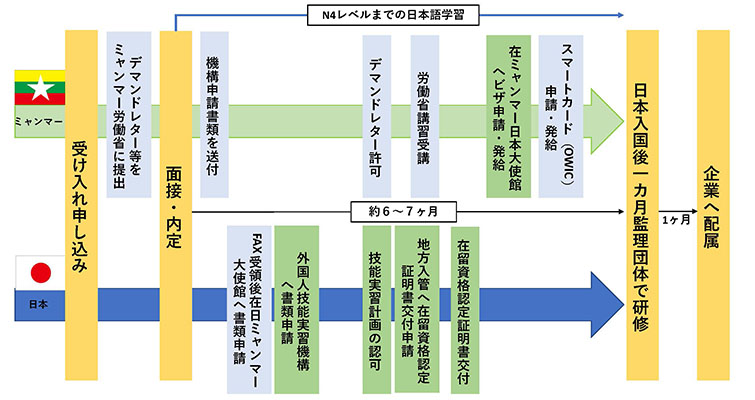 弊社の送り出し事業に関して合意を頂けましたら、技能実習生採用の申込書及びデマンドレター(求人票)等をご提出頂きます。その後、雇用条件書及び雇用計画書等の必要な書類をご準備頂き、ミャンマー現地面接のための渡航スケジュールを決めます。